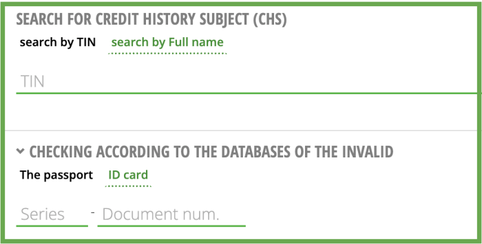 By entering the USREOU or name of a legal entity and clicking the «SEARCH» button, you can find the subject of credit history.