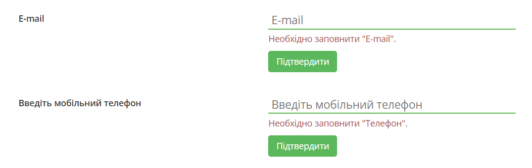 2. Вказати та підтвердити номер телефону та email
